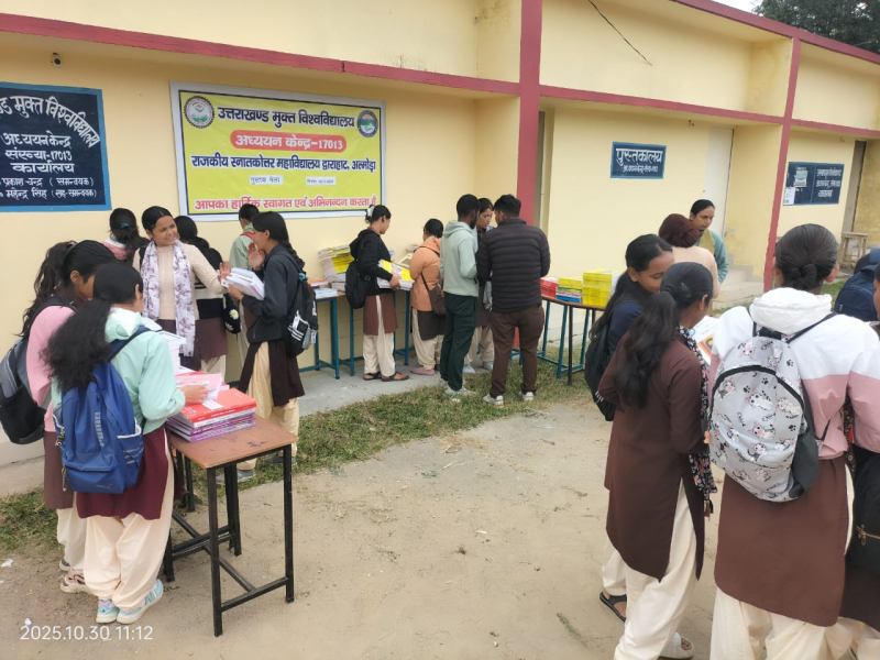 उत्तराखंड मुक्त विश्वविद्यालय के अध्ययन केंद्र राजकीय स्नातकोत्तर महाविद्यालय द्वाराहाट (17013) द्वारा आज दिनांक 30 अक्टूबर 2025 को निःशुल्क पुस्तक वितरण कार्यक्रम आयोजित किया गया। इस अवसर पर विद्यार्थियों को विश्वविद्यालय की विभिन्न विषयों की लगभग 320 पुस्तकें निःशुल्क वितरित की गईं।