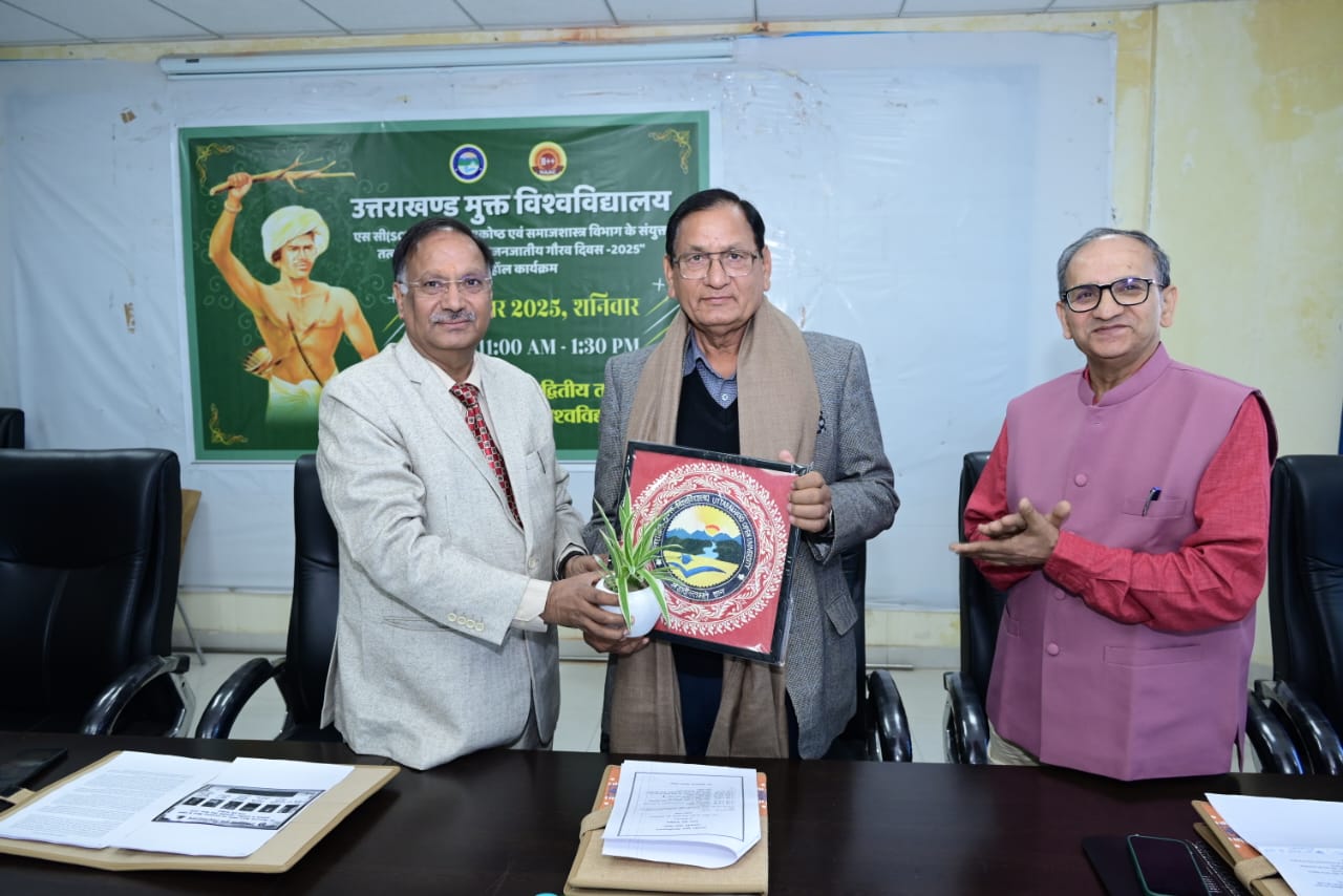 दिनांक 15 नवंबर 2025 को उत्तराखण्ड मुक्त विश्वविद्यालय के एससी / एसटी प्रकोष्ठ एवं समाजशास्त्र विभाग के संयुक्त तत्वावधान में आयोजित जनजाति गौरव दिवस टाउन हॉल कार्यक्रम का भव्य आयोजन किया गया। जनजाति गौरव दिवस का उद्देश्य समाज के हर वर्ग में आदिवासी नायकों के योगदान, उनके आदर्शों और जीवन मूल्यों के प्रति जागरूकता फैलाना है, ताकि आने वाली पीढ़ियाँ भी उनके त्याग और बलिदान से प्रेरणा ले सकें। उनकी संस्कृति और योगदान को उजागर करना और अगली पीढ़ी को अपनी विरासत की रक्षा के लिए प्रेरित करना है।