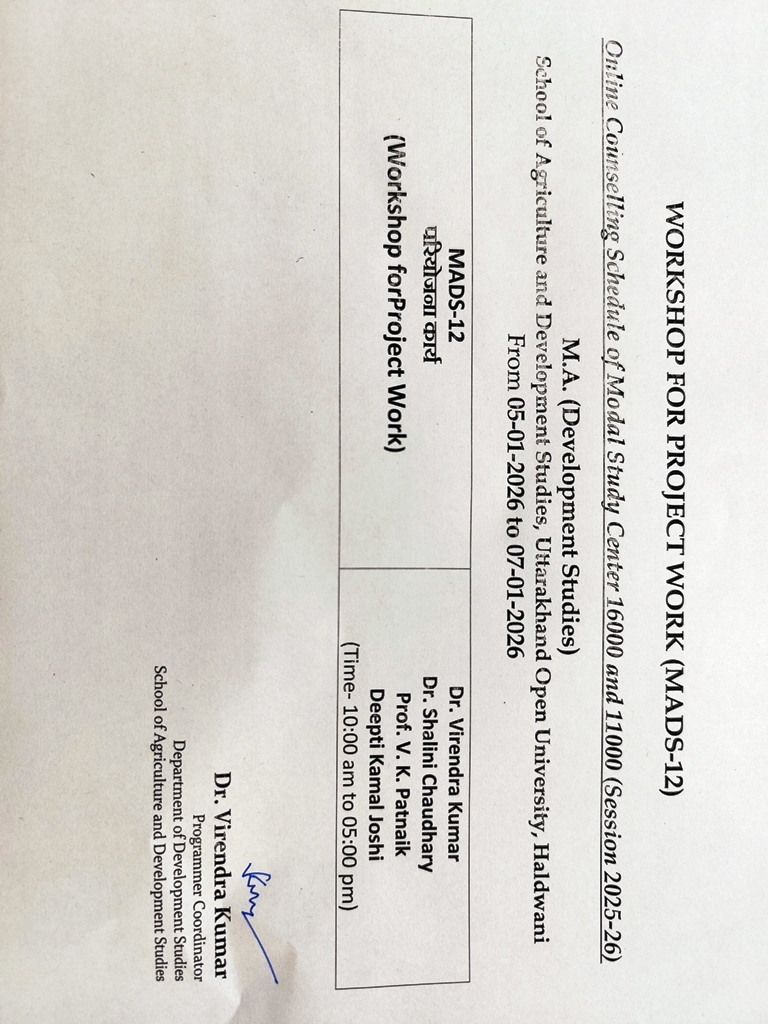Notice: Online Workshop Schedule for M.A (Development Studies) Project Work