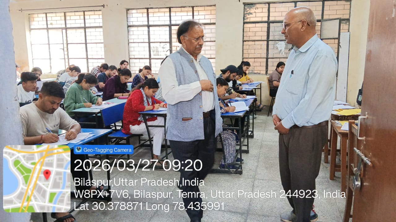 माननीय कुलपति महोदय द्वारा शीतकालीन परीक्षाओं में रुद्रपुर परीक्षा केंद्र का औचक निरीक्षण किया गया / March 27, 2026 Submitted by pawankumar on March 27, 2026 माननीय कुलपति महोदय द्वारा शीतकालीन परीक्षाओं में रुद्रपुर परीक्षा केंद्र का औचक निरीक्षण किया गया। Log in to post comments