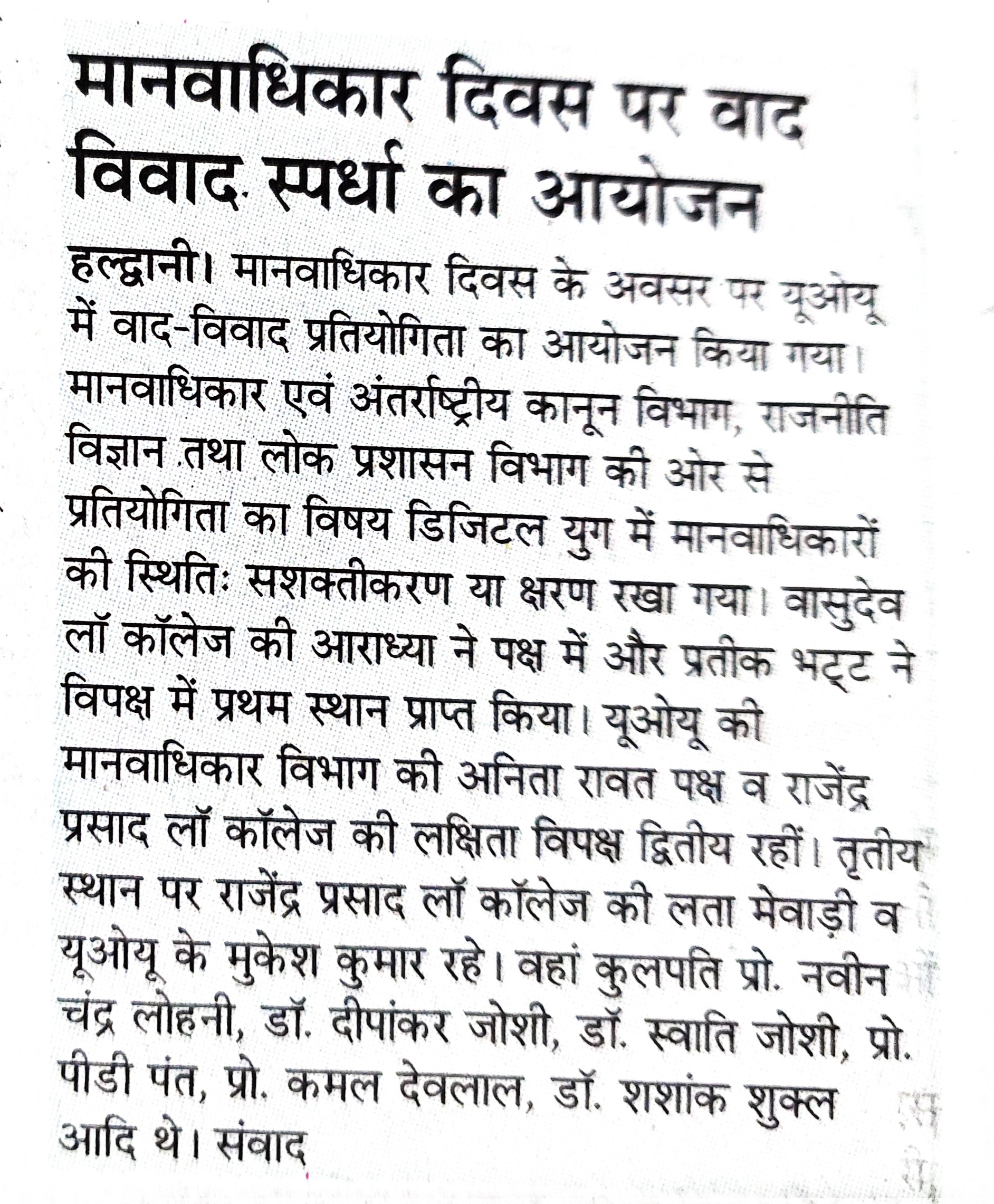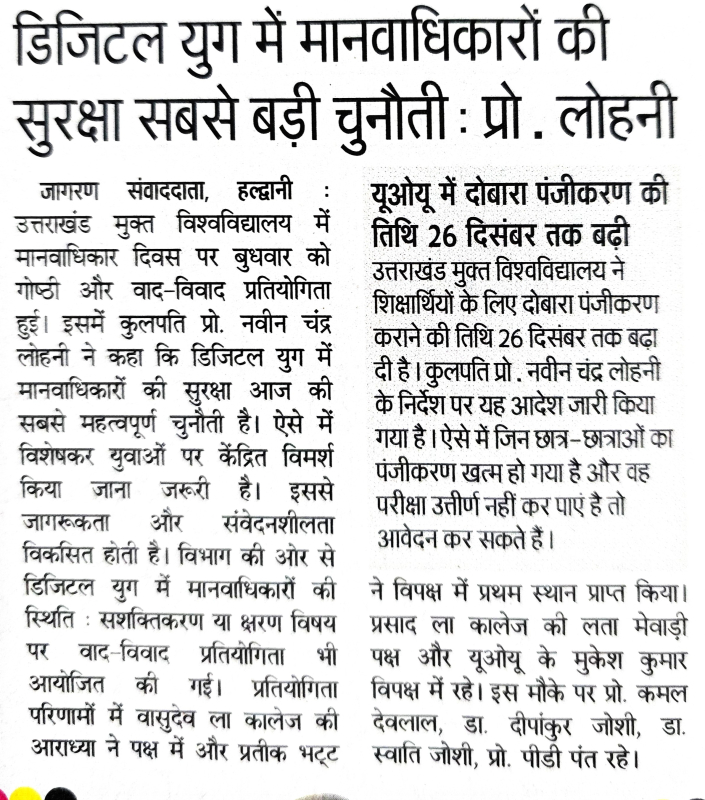 प्रेस विज्ञप्ति: डिजिटल युग में मानवाधिकारों की सुरक्षा सबसे बड़ी चुनौती: प्रो. लोहनी।