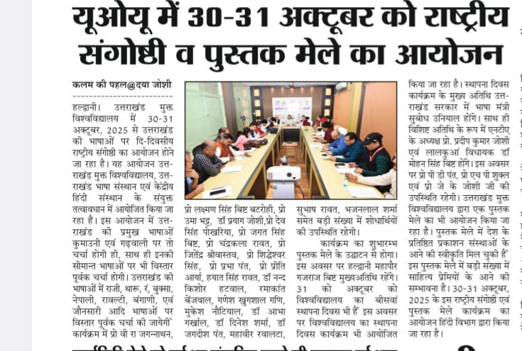 यूओयू में 30 - 31 अक्‍टूबर को राष्‍ट्रीय संगोष्‍ठी व पुस्‍तक मेले का आयोजन ।
