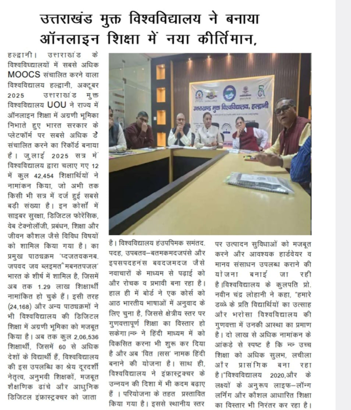 उत्तराखण्‍ड मुक्‍त विश्‍वविद्यालय ने बनाया ऑनलाइन शिक्षा में नया कीर्तिमान