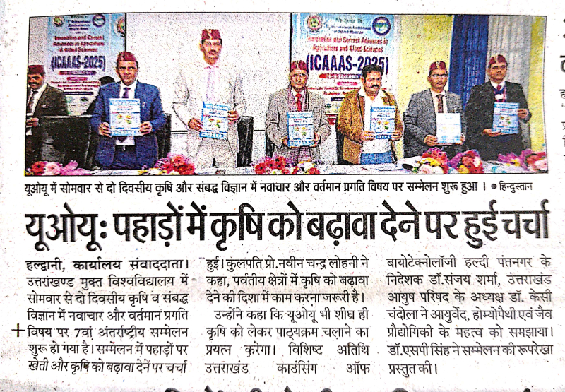 यूओयू में दो दिवसीय कृषि एवं संबद्ध विज्ञान में नवाचार एवं वर्तमान प्रगति विषय पर अंतरराष्‍ट्रीय सम्‍मेलन ।