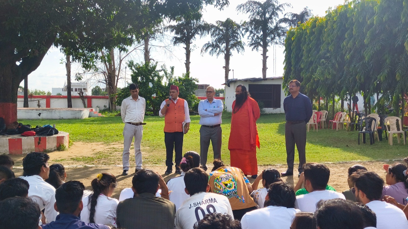 आज दिनांक 08 अक्टूबर 2025 को रामानंद इंस्टिट्यूट ऑफ फार्मेसी एंड मैनेजमेंट बहादराबाद हरिद्वार के छात्र छात्राओं के मध्य चल रही बॉलीबॉल प्रतियोगिता के बीच उत्तराखंड मुक्त विश्वविद्यालय के पाठ्यक्रमों के बारे में जानकारी दी गई एवं ग्रीष्मकालीन सत्र में 10 अक्टूबर से पूर्व प्रवेश लेने का आह्वाहन किया गया,साथ ही संस्थान में भविष्य में अध्ययन केंद्र स्थापित किए जाने के संदर्भ में भी सकारात्मक वार्ता हुई। कार्यक्रम में अखिल भारतीय अखाड़ा परिषद के अध्यक्ष एवं संस्थान के अध्यक्ष पूज्य श्रीमहंत रविंद्र पुरी जी महाराज ने कहा कि मुक्त एवं दूरस्थ शिक्षा आज समय की जरूरत है उत्तराखंड मुक्त विश्वविद्यालय उच्च शिक्षा घर घर पहुंचाने में महत्वपूर्ण भूमिका का निर्वहन कर रहा है संस्थान के छात्र छात्राएं एवं अध्यापक निश्चित रूप से इसका लाभ उठाएंगे। उन्होंने कहा की रामानंद इंस्टिट्यूट ऑफ़ फार्मेसी एंड मैनेजमेंट को उत्तराखण्ड मुक्त विश्वविद्यालय का जल्द ही अध्ययन केंद्र बनाने की औपचारिकताएं संपन्न करा कर अध्ययन केंद्र बनाया जाएगा। सहायक क्षेत्रीय निदेशक डॉ.बृजेश कुमार बनकोटी ने बताया की किस प्रकार सभी छात्र छात्राएं मुक्त एवं दूरस्थ शिक्षा का लाभ उठा सकते है उन्होंने कहा कि उत्तराखंड मुक्त विश्वविद्यालय हर जरूरतमंद तक उच्च शिक्षा पहुंचाने हेतु प्रयासरत है संस्थान में अगर अध्ययन केंद्र खुलता है तो निश्चित रूप से आसपास के ग्रामीण युवाओं को इसका लाभ मिलेगा।साथ ही उन्होंने वहां चल रही बॉलीबॉल प्रतियोगिता में लगे छात्रों का भी उत्साहवर्धन किया।इससे पूर्व संस्थान के निदेशक डॉ.वैभव शर्मा ने सभी का स्वागत करते हुए मुक्त एवं दूरस्थ शिक्षा को सभी के लिए वरदान बताया। इस अवसर पर डॉ मयंक गुप्ता, डॉ .संजय बत्रा,मनुज उनियाल, सूरज राजपूत, कुसुम लता, सचिन विश्नोई, डॉ रोहित,डॉ ज्योति, अमित, हिमांशु, कविता, संदीप, संगीता, श्वेता, मंजीत, डॉ अनुराधा, कनिष्का, प्रज्वल, विश्वजीत, पवन, संजय, सौरभ, शिखा, शिवांगी, भाग्यलक्ष्मी, निकिता, मनविंदर, निकिता, आरती, नेहा, मोनिका, प्रियांशु, गरिमा,नीतू, हेमंत,मनीषा, वैशाली, कुनिका, मितांशी, निहारिका एवं सभी अन्य अध्यापकगण ,छात्र मौजूद रहें।