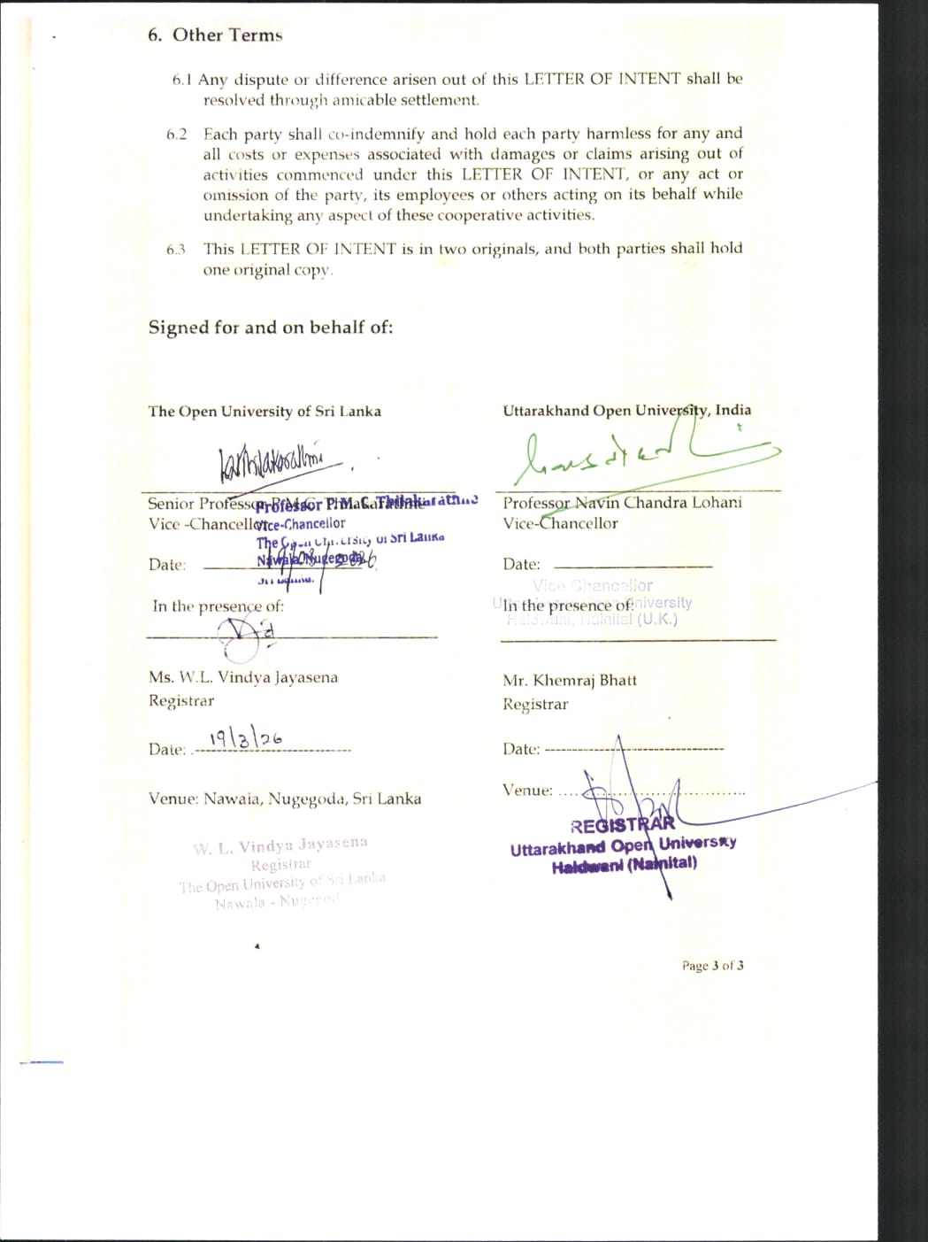 उत्तराखण्ड मुक्त विश्वविद्यालय, हल्द्वानी ने वैश्विक शैक्षिक सहयोग की दिशा में एक महत्वपूर्ण उपलब्धि हासिल करते हुए श्रीलंका ओपन यूनिवर्सिटी के साथ 8 अप्रैल 2026 को औपचारिक रूप से समझौता ज्ञापन (MoU) पर हस्ताक्षर किए हैं। यह समझौता अकादमिक सहयोग, शोध (Research) एवं नवाचार (Innovation) के क्षेत्र में संयुक्त कार्य को बढ़ावा देने के उद्देश्य से किया गया है।