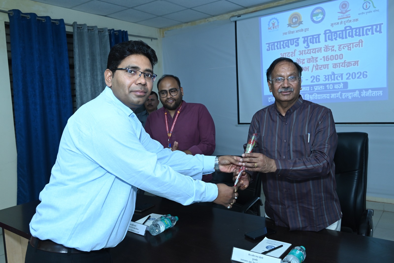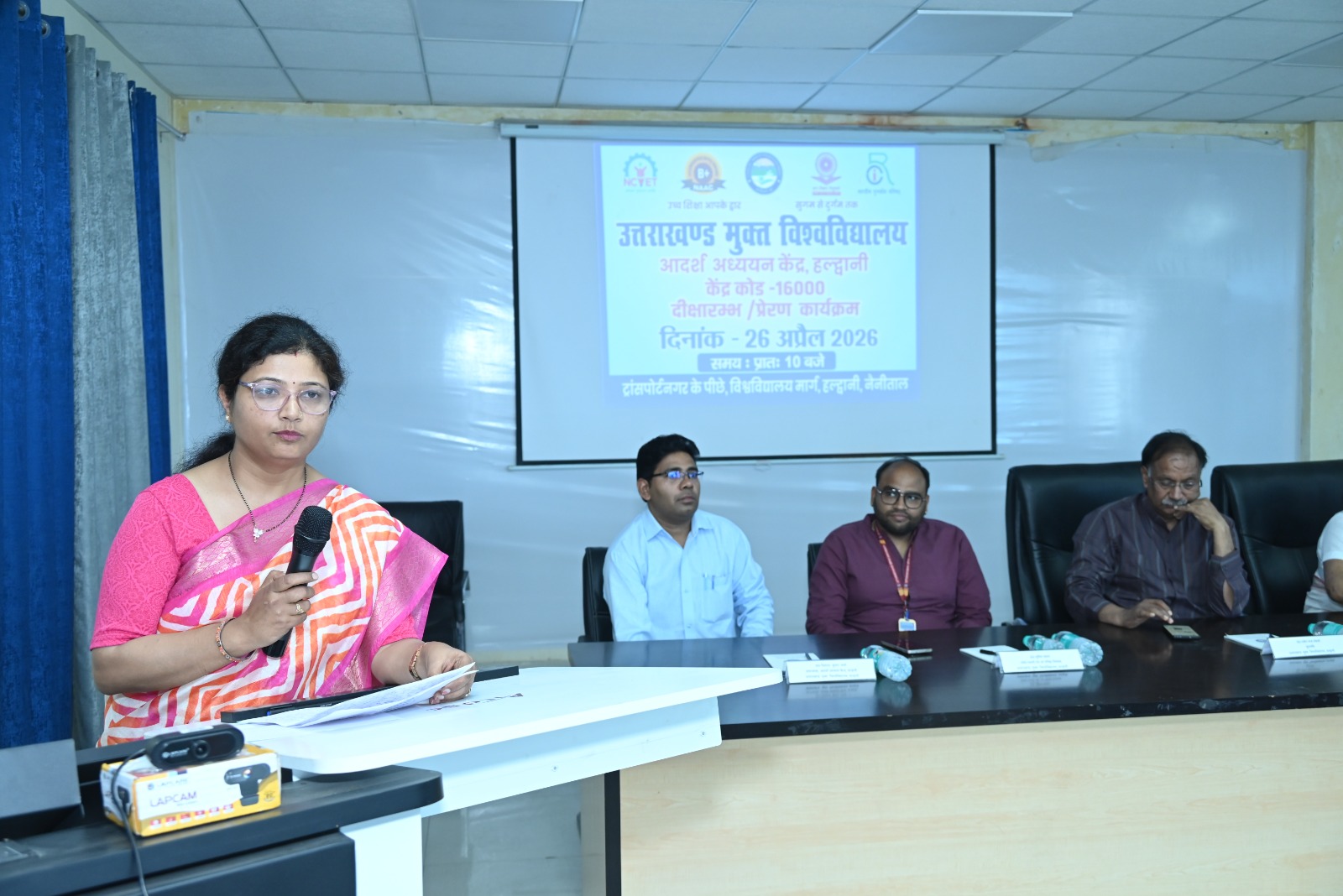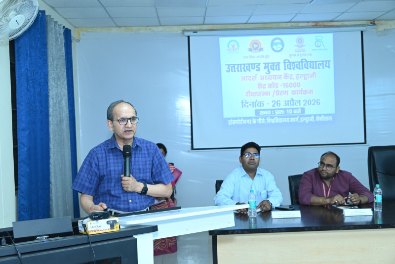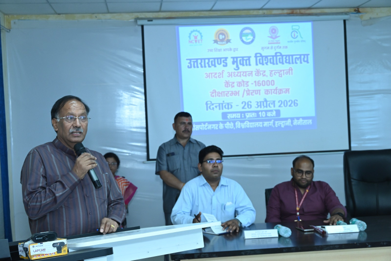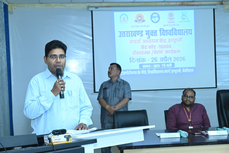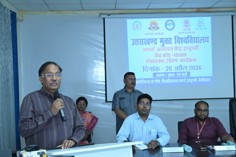 हल्द्वानी। उत्तराखण्ड मुक्त विश्वविद्यालय में दिनांक 26 अप्रैल 2026 को मॉडल अध्ययन केंद्र (16000) द्वारा नवप्रवेशित शिक्षार्थियों के लिए इंडक्शन एवं काउंसलिंग कार्यक्रम का भव्य आयोजन किया गया। यह कार्यक्रम प्रातः 10:00 बजे विश्वविद्यालय परिसर में उत्साह एवं अकादमिक वातावरण के साथ प्रारंभ हुआ। यह उन शिक्षार्थियों के लिए आयोजित किया गया था जो किसी कारणवश विगत 17 अप्रैल 2026 को अयोजित किए गए कार्यक्रम में शामिल नहीं हो पाए थे। सर्वप्रथम कुलपति प्रो. नवीन चंद्र लोहानी सहित वरिष्ठ प्राध्यापकों द्वारा दीप प्रज्वलन कर कार्यक्रम का औपचारिक उद्घाटन किया गया तथा कुलगीत के माध्यम से एकता एवं उद्देश्य की भावना को प्रकट किया गया।