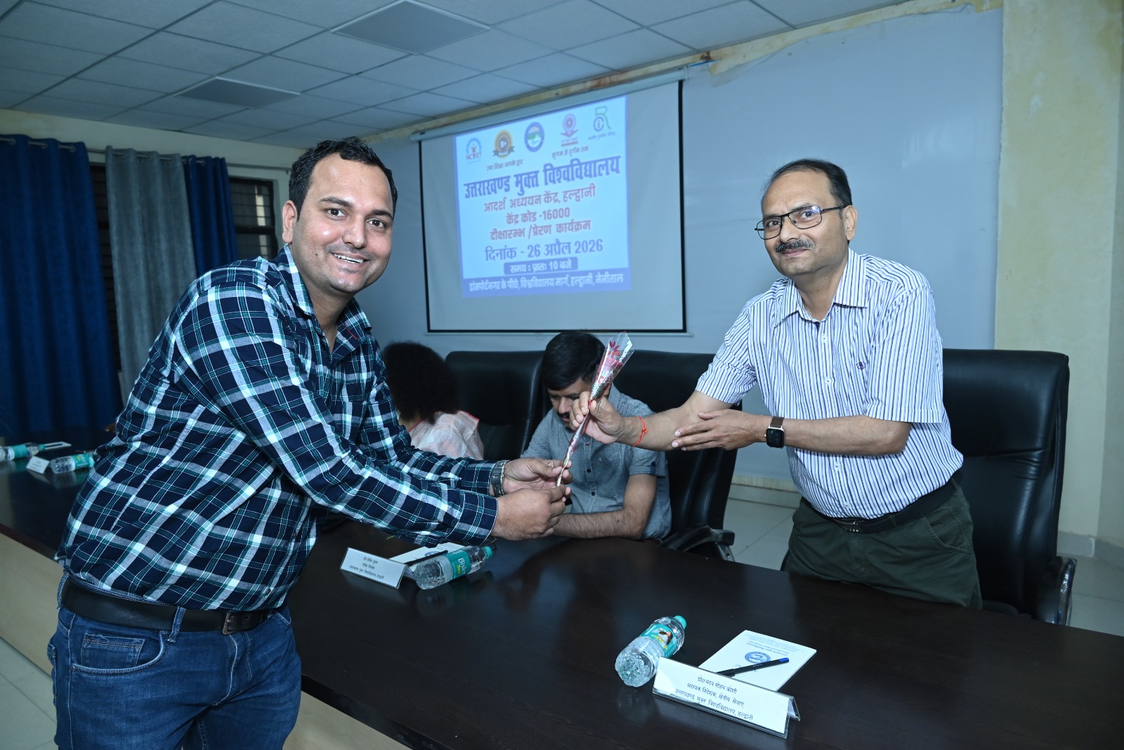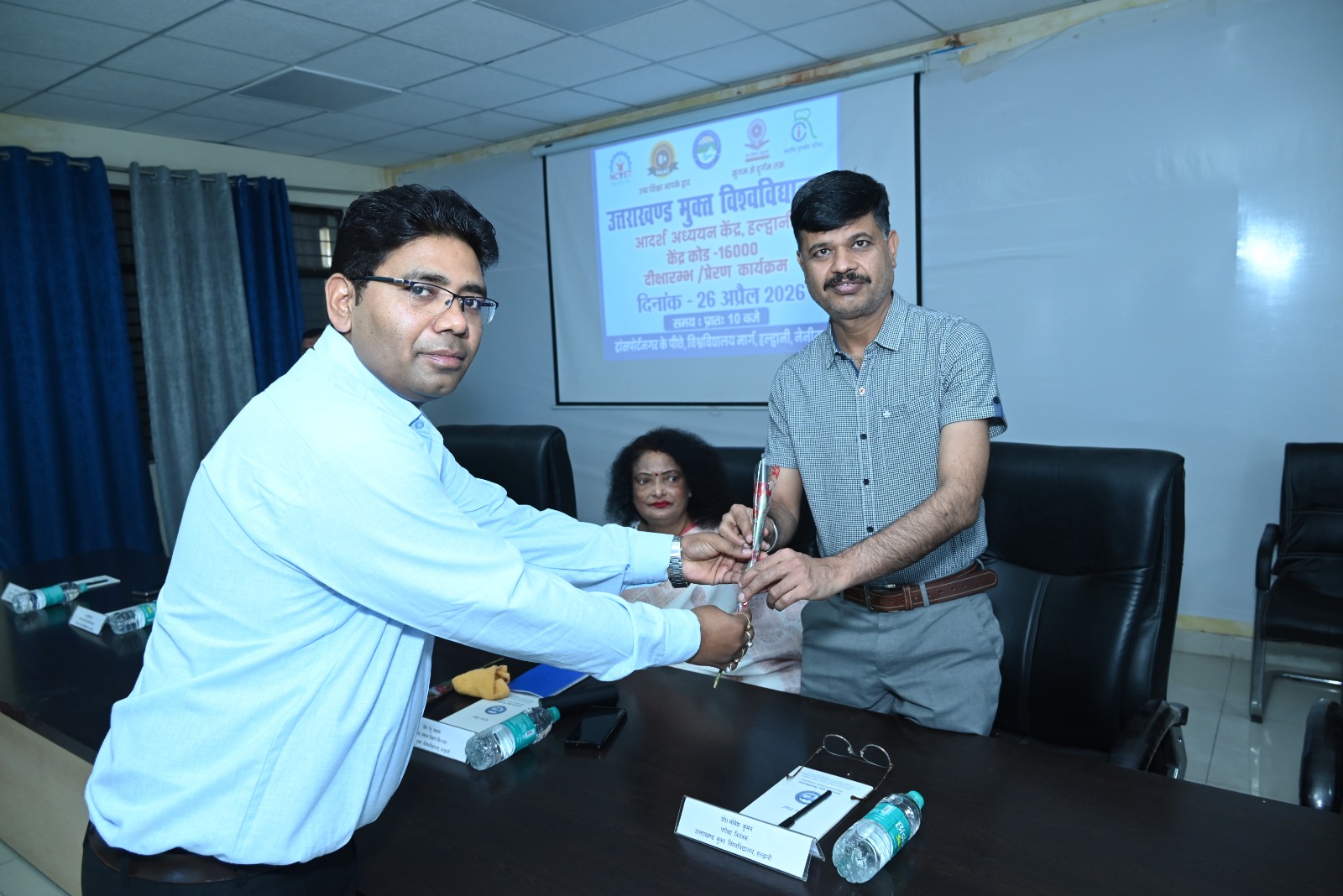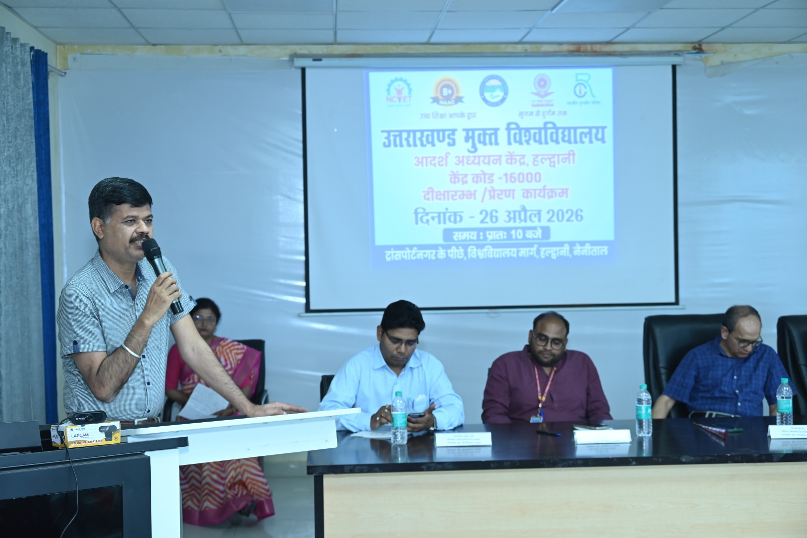 हल्द्वानी। उत्तराखण्ड मुक्त विश्वविद्यालय में दिनांक 26 अप्रैल 2026 को मॉडल अध्ययन केंद्र (16000) द्वारा नवप्रवेशित शिक्षार्थियों के लिए इंडक्शन एवं काउंसलिंग कार्यक्रम का भव्य आयोजन किया गया। यह कार्यक्रम प्रातः 10:00 बजे विश्वविद्यालय परिसर में उत्साह एवं अकादमिक वातावरण के साथ प्रारंभ हुआ। यह उन शिक्षार्थियों के लिए आयोजित किया गया था जो किसी कारणवश विगत 17 अप्रैल 2026 को अयोजित किए गए कार्यक्रम में शामिल नहीं हो पाए थे। सर्वप्रथम कुलपति प्रो. नवीन चंद्र लोहानी सहित वरिष्ठ प्राध्यापकों द्वारा दीप प्रज्वलन कर कार्यक्रम का औपचारिक उद्घाटन किया गया तथा कुलगीत के माध्यम से एकता एवं उद्देश्य की भावना को प्रकट किया गया।