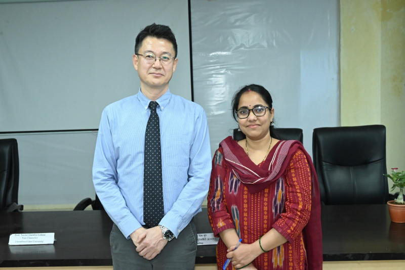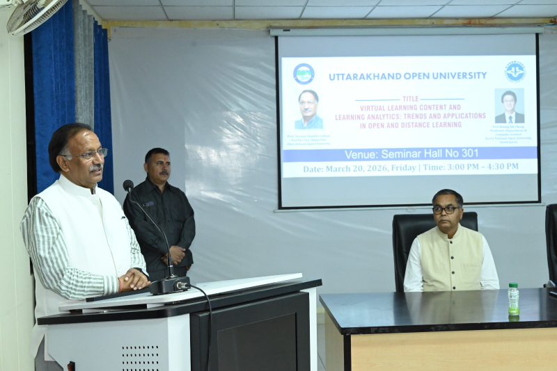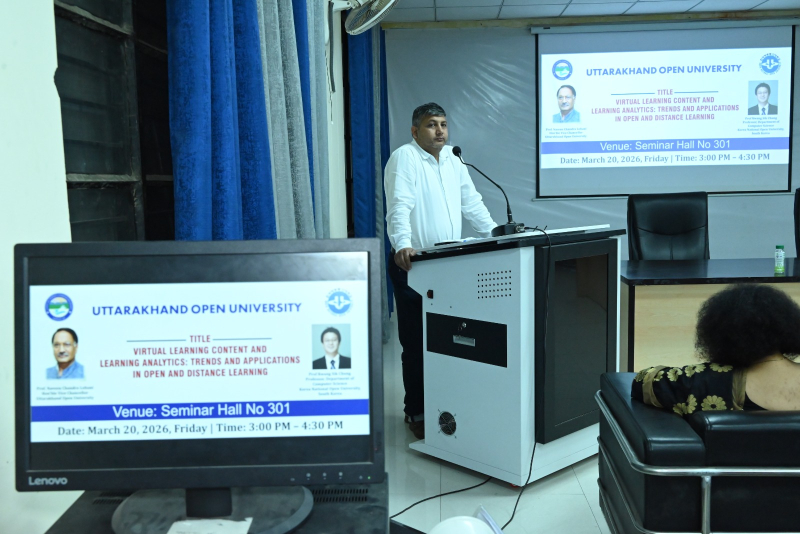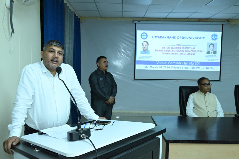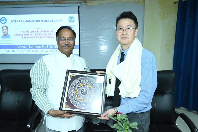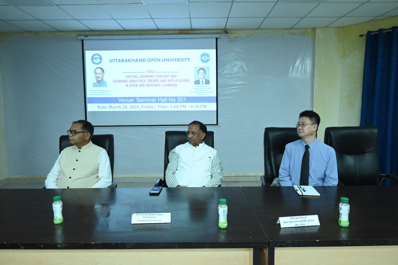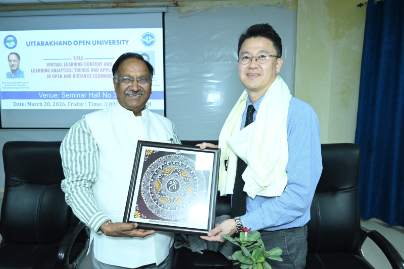 उत्तराखंड मुक्त विश्वविद्यालय, हल्द्वानी द्वारा अंतरराष्ट्रीय शैक्षणिक सहयोग को सुदृढ़ करने की दिशा में एक महत्वपूर्ण पहल के अंतर्गत कोरिया नेशनल ओपन यूनिवर्सिटी (KNOU), दक्षिण कोरिया के प्रतिष्ठित प्रोफेसर प्रो. क्वांग सिक चुंग के Visiting Professor Fellowship Programme के अंतर्गत आयोजित शैक्षणिक कार्यक्रम आज दिनांक 20 मार्च 2026 को सफलतापूर्वक सम्पन्न हुए। आज आयोजित कार्यक्रमों की श्रृंखला में प्रातः 11:00 बजे विश्वविद्यालय अतिथि गृह स्थित सेमिनार हॉल में “Institutional Overview and Academic Practices at KNOU: A Perspective from Open and Distance Learning” विषय पर परिचयात्मक संगोष्ठी आयोजित की गई, जिसमें प्रो. चुंग ने KNOU की शैक्षणिक संरचना, ओपन एंड डिस्टेंस लर्निंग प्रणाली तथा नवाचार आधारित शिक्षण पद्धतियों पर विस्तार से प्रकाश डाला। इसके उपरांत दोपहर 12:00 बजे “Interaction with Research and Innovation Cell” सत्र आयोजित हुआ, जिसमें “Overview of Research Activities at UOU and Interactive Discussion” विषय पर विश्वविद्यालय के शोध कार्यों पर चर्चा की गई तथा शोधार्थियों एवं शिक्षकों के साथ सार्थक संवाद स्थापित हुआ। दोपहर 3:00 बजे से सेमिनार हॉल संख्या 301 में आयोजित मुख्य व्याख्यान में प्रो. चुंग ने “Virtual Learning Content and Learning Analytics: Trends and Applications in Open and Distance Learning” विषय पर व्याख्यान देते हुए डिजिटल शिक्षा, लर्निंग एनालिटिक्स, गेम-आधारित शिक्षण तथा क्लाउड-आधारित शिक्षण प्रणालियों के वर्तमान रुझानों एवं भविष्य की संभावनाओं पर विस्तृत चर्चा की। उन्होंने डेटा-आधारित शिक्षण सुधार की आवश्यकता पर विशेष बल दिया। इस अवसर पर विश्वविद्यालय के कुलपति प्रो. नवीन चंद्र लोहानी ने कहा कि Visiting Professor Fellowship Programme के माध्यम से विश्वविद्यालय वैश्विक शैक्षणिक सहयोग की दिशा में सशक्त कदम उठा रहा है। उन्होंने कहा कि ऐसे कार्यक्रम शिक्षकों एवं विद्यार्थियों को अंतरराष्ट्रीय स्तर की शैक्षणिक समझ प्रदान करते हैं तथा शोध एवं नवाचार को नई दिशा देते हैं। अंतरराष्ट्रीय संबंध प्रकोष्ठ के प्रभारी प्रो. जितेन्द्र पांडे ने बताया कि इस प्रकार की शैक्षणिक गतिविधियाँ विश्वविद्यालय के अंतरराष्ट्रीयकरण के प्रयासों को गति प्रदान करती हैं। उन्होंने कहा कि इस सहयोग के माध्यम से संयुक्त शोध, सह-विकसित पाठ्यक्रम, MOOCs तथा प्रौद्योगिकी-आधारित शिक्षण नवाचारों पर ठोस कार्य किया जा रहा है। कार्यक्रमों में विश्वविद्यालय के शिक्षक, शोधार्थी एवं अधिकारीगण उत्साहपूर्वक उपस्थित रहे तथा संवादात्मक सत्रों में सक्रिय सहभागिता की। उल्लेखनीय है कि प्रो. क्वांग सिक चुंग 18 मार्च से 30 मार्च 2026 तक विश्वविद्यालय में प्रवास पर हैं तथा इस अवधि में विभिन्न शैक्षणिक एवं शोध गतिविधियों में सहभागिता कर रहे हैं। निकट भविष्य में उत्तराखंड मुक्त विश्वविद्यालय एवं कोरिया नेशनल ओपन यूनिवर्सिटी (KNOU) के मध्य औपचा