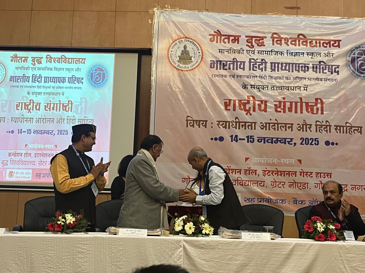 संगोष्ठी के उद्घाटन सत्र में विश्वविद्यालय के कुलपति प्रो. राणा प्रताप सिंह ने कहा, “हिंदी साहित्य ने स्वाधीनता संग्राम को शब्दों, विचारों और संघर्ष की लौ से जीवित रखा है। यह साहित्य समाज को नई दिशा देने वाला माध्यम रहा है।” उन्होंने हिंदी साहित्य के मूल संदर्भों और उसकी ऐतिहासिक भूमिका पर विस्तार से प्रकाश डाला।