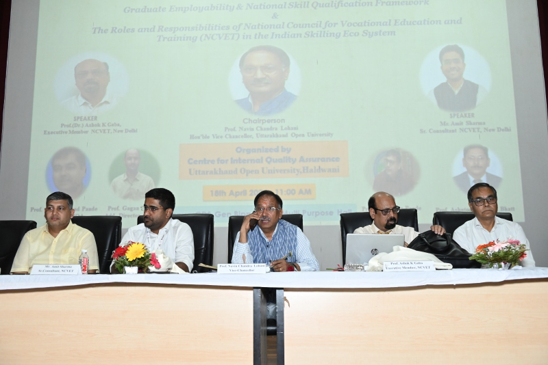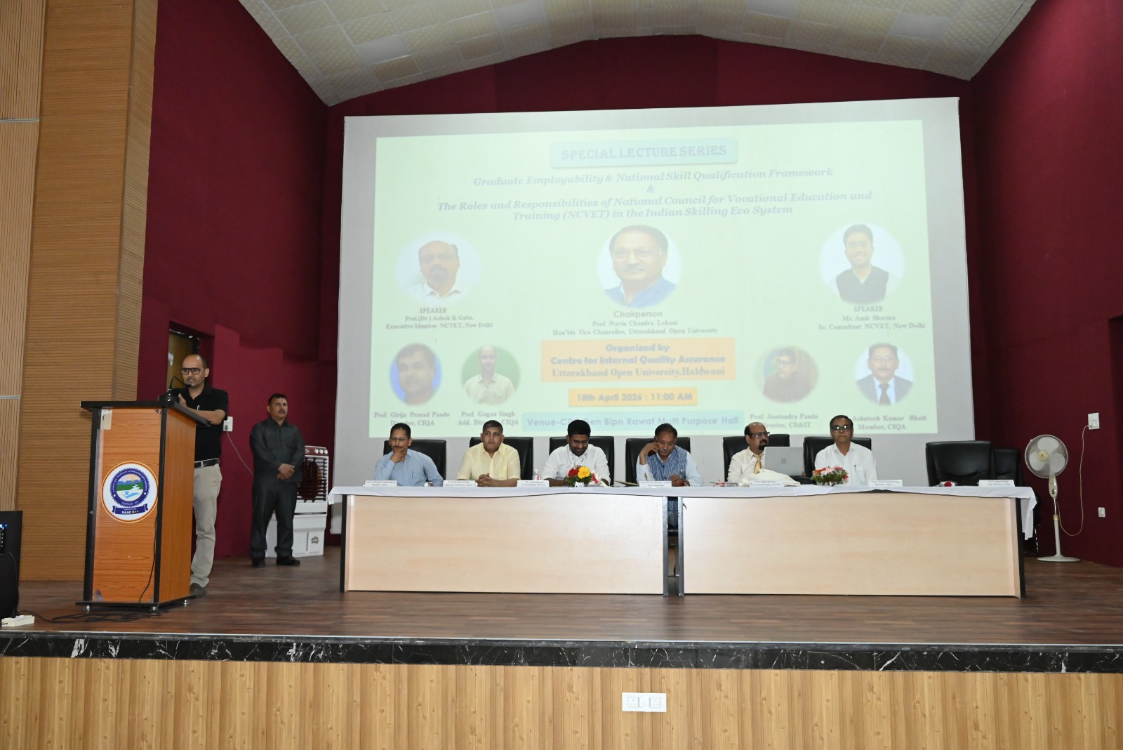 उत्तराखंड मुक्त विश्वविद्यालय, हल्द्वानी के आंतरिक गुणवत्ता आश्वासन केंद्र (CIQA) द्वारा आयोजित विशेष व्याख्यान श्रृंखला के अंतर्गत “Graduate Employability & National Skill Qualification Framework तथा भारतीय स्किलिंग इकोसिस्टम में NCVET की भूमिका एवं जिम्मेदारियां” विषय पर एक महत्वपूर्ण व्याख्यान का आयोजन विश्वविद्यालय के जनल बिपिन रावत बहुउद्देशीय सभागार में किया गया।