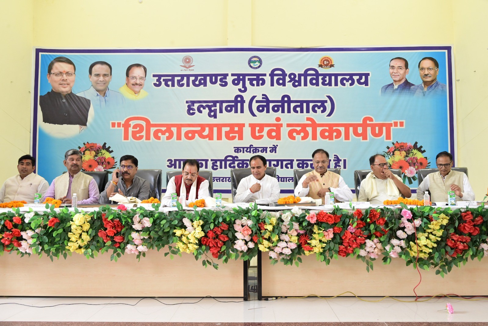 उत्तराखंड मुक्त विश्वविद्यालय, हल्द्वानी में आज शिलान्यास एवं लोकार्पण कार्यक्रम का आयोजन किया गया, जिसमें मुख्य अतिथि के रूप में प्रदेश के उच्च शिक्षा मंत्री डॉ. धन सिंह रावत ने शिरकत की। इस अवसर पर माननीय सांसद श्री अजय भट्ट और कई स्थानीय जनप्रतिनिधि व राज्यमंत्री भी उपस्थित रहे। कार्यक्रम की अध्यक्षता विश्वविद्यालय के कुलपति प्रो. नवीन चंद्र लोहनी ने की।