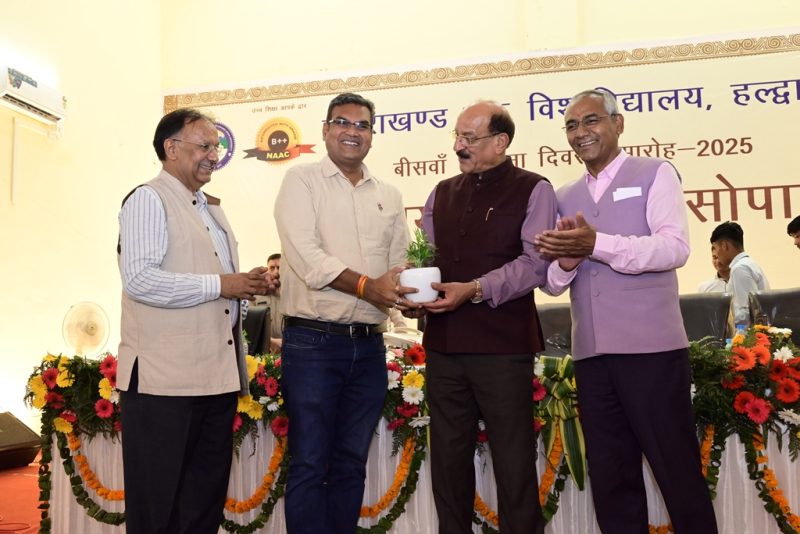 समारोह में विशिष्ट अतिथि यूकॉस्ट देहरादून के महानिदेशक प्रो. दुर्गेश पंत ने विश्वविद्यालय के स्थापना काल से अब हुए विकास पर चर्चा की और कहा कि अब हमें एआई टेक्नॉलॉजी के माध्यम से पाठ्यक्रमों को बेहतर बनाना चाहिए। निदेशक अकादमिक प्रो. पीडी पंत ने विश्वविद्यालय की प्रगति को लेकर विस्तृत रूप से चर्चा की। जबकि विश्वविद्यालय के पूर्व निदेशक प्रो. जेके जोशी व प्रो. एचपी शुक्ला ने भी पुरानी यादों को ताजा करते हुए विश्वविद्यालय में किये गये कार्यों का उल्लेख किया और कहा कि इसकी बेहतरी के लिए वह हमेशा तत्पर रहेंगे। कुलसचिव डा. खेमराज भट्ट ने सभी अतिथियों का आभार जताया। इस मौके पर विश्वविद्यालय के तीन पुरा छात्र डा. दीप चन्द्रा, डा. विपिन चन्द्रा व डा. सुधीर पंत को सम्मानित भी किया गया। कार्यक्रम का संचालन डा. कुमार मंगलम ने किया। इस मौके पर वित्त नियंत्रक एसपी सिहं सहित सभी विभागों के निदेशक, शिक्षक व कर्मचारी मौजूद थे।