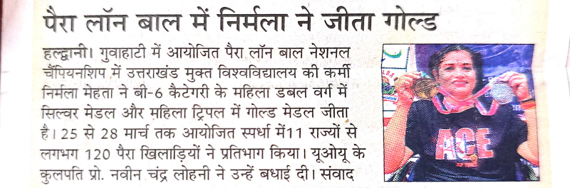 यूओयू कर्मी निर्मला मेहता ने पैरा लॉन बॉल में जीता गोल्ड मैडल