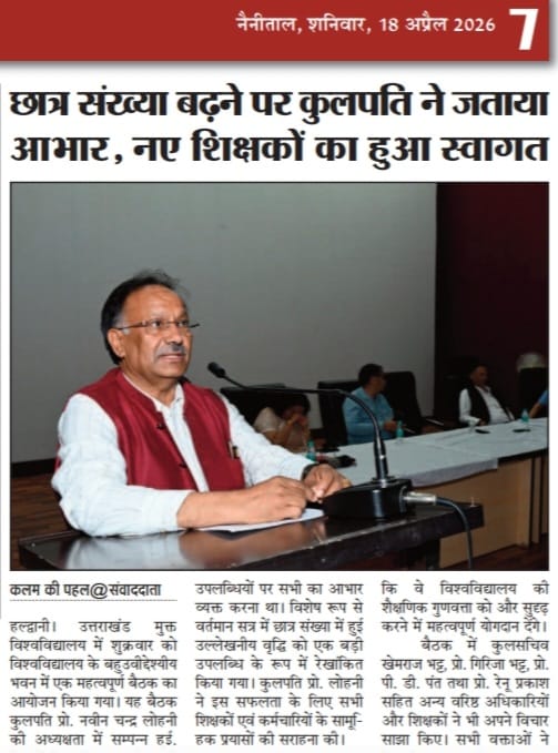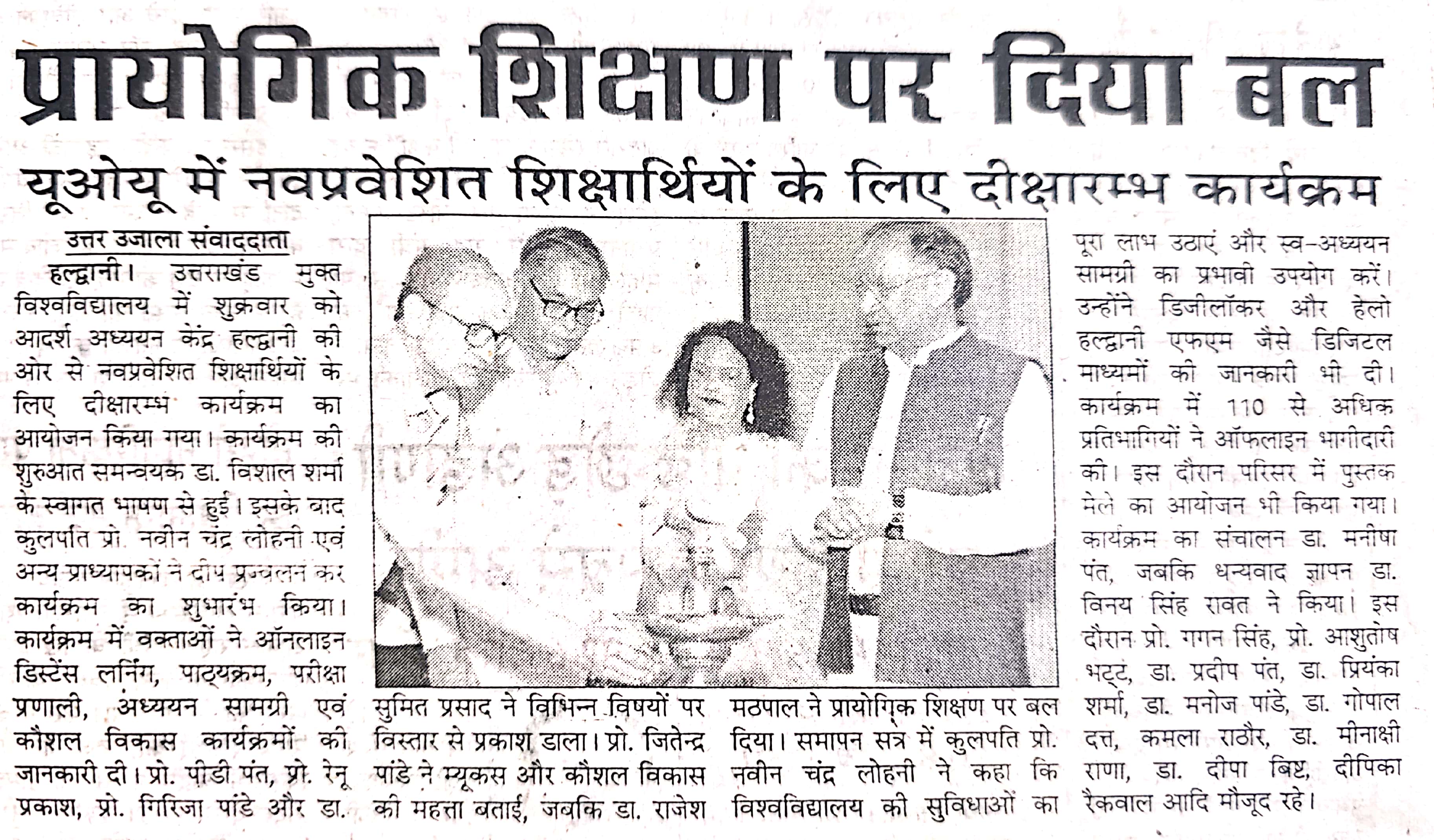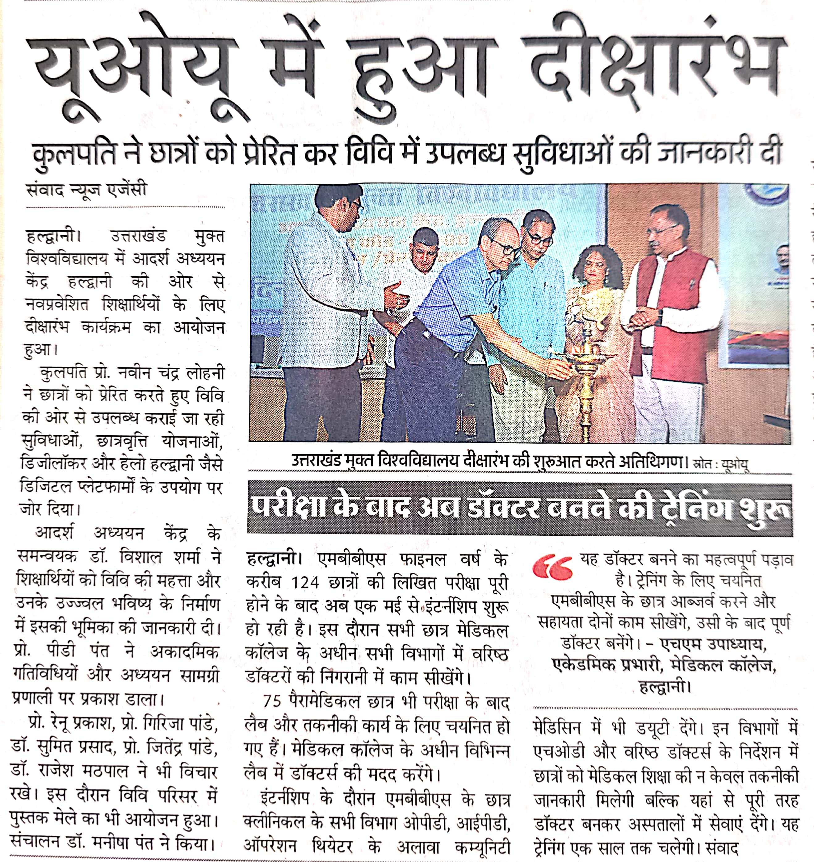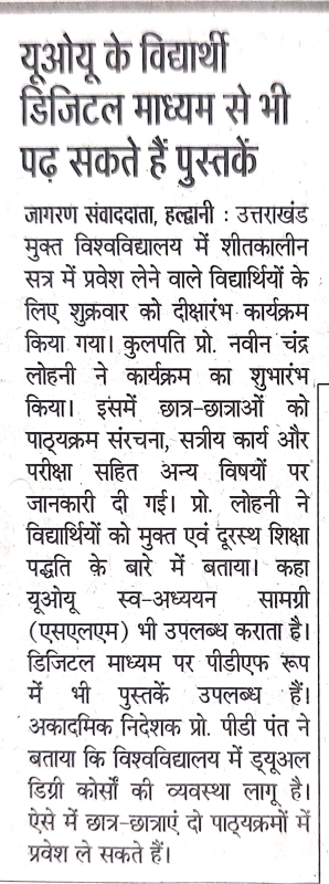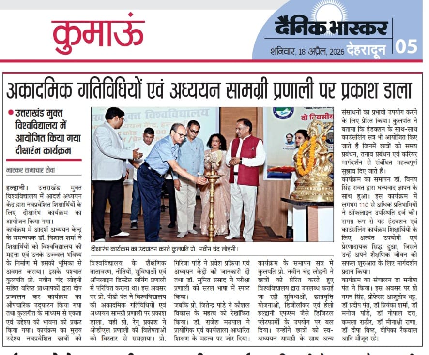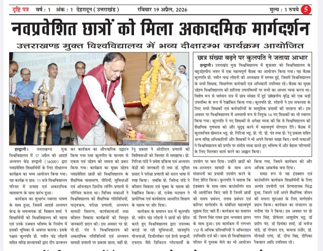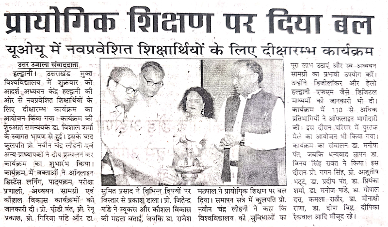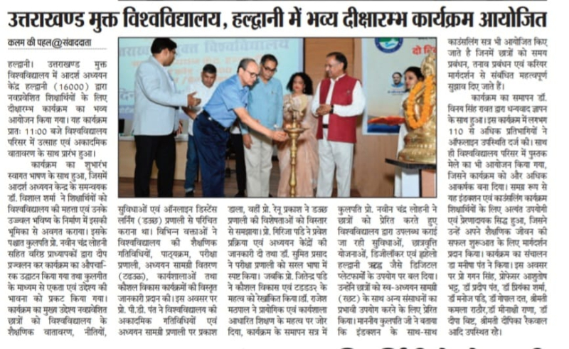 यूओयू में नवप्रवेशित शिक्षर्थियों के लिए दीक्षारम्भ कार्यक्रम का आयोजन और साथ ही छात्र संख्या बढ़ने पर कुलपति महोदय द्वारा आभार जताया गया एवं नए शिक्षकों का हुआ स्वागत साभार दैनिक जागरण, अमर उजाला, भास्कर समाचार, ,उत्तर उजाला