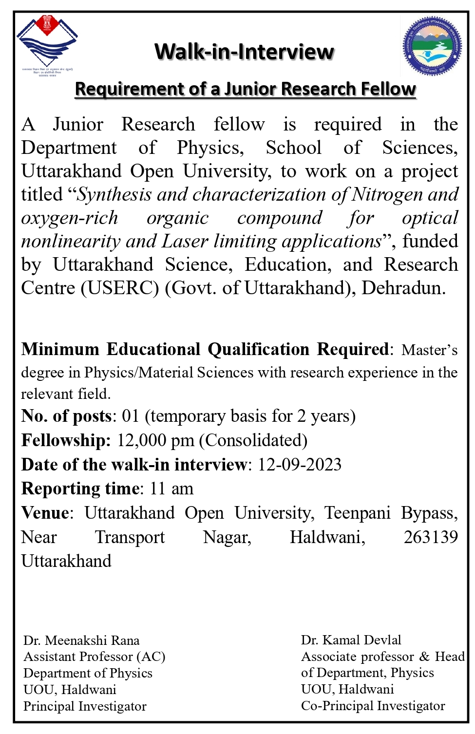 Walk-in-Interview Requirement of a Junior Research Fellow