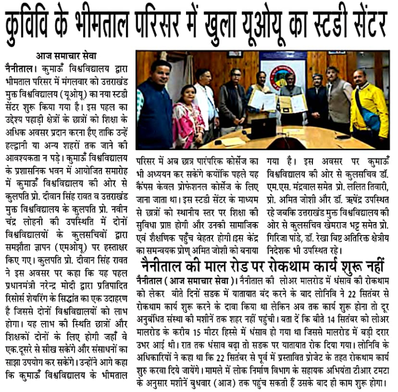 कु0विवि0 के भीमताल परिसर में खुला यूओयू का स्‍टडी सेंटर